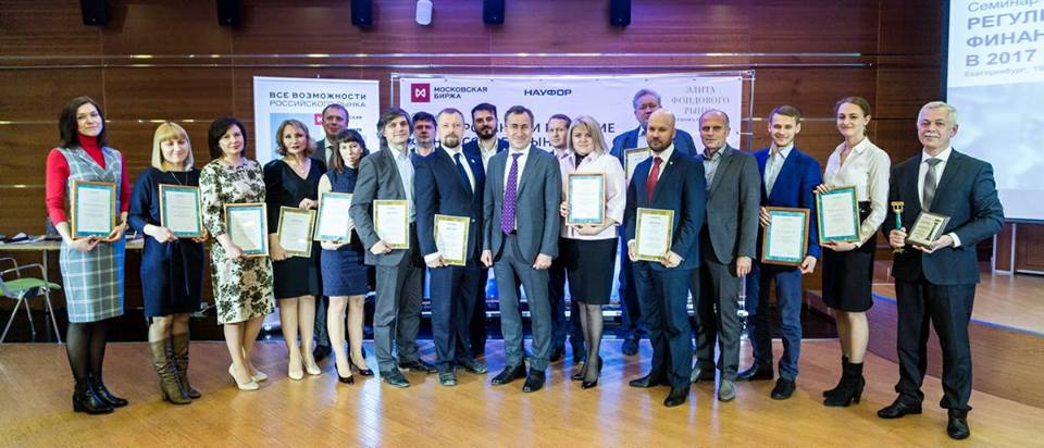 Также была вручена благодарность НАУФОР за вклад в развитие фондового рынка в Уральском регионе начальнику отдела обеспечения Пермской фондовой компании Ольге Переваловой.