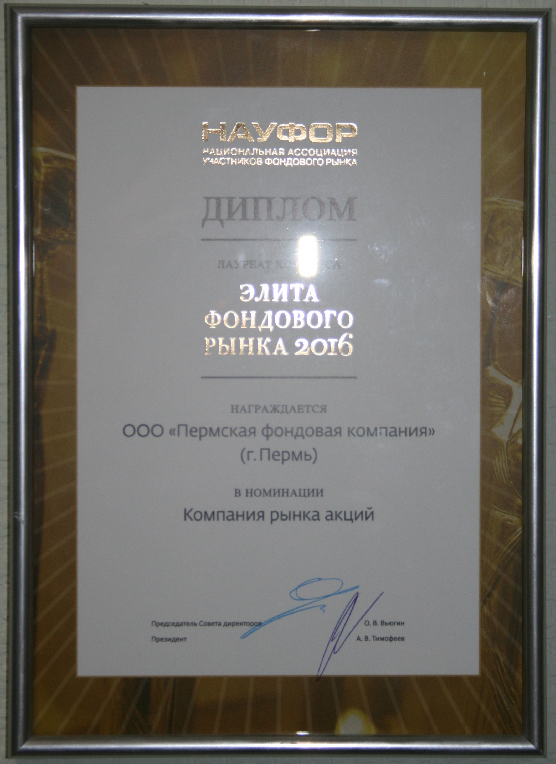 В Екатеринбурге прошло награждение лауреатов регионального этапа конкурса «Элита фондового рынка-2016». Хотя общероссийская церемония награждения состоится 22 июня в Москве, герои уже известны. В этом году Пермской фондовой компании досталась победа сразу в двух номинациях: Компания рынка акций и Компания уральского региона! Вторая награда является особенно престижной среди профессиональных участников фондового рынка. Награда в виде статуэтки дополнила обширную коллекцию наград компании полученных за 22 года работы.